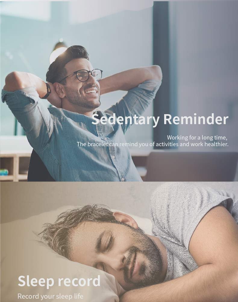 Wireless earbuds with Ai smart, single or two simultaneous use, heart rate test, blood pressure test, step counting, mileage, consumption, sleep monitoring, sedentary reminder, raised wrist screen, WeChat, SMS push,Take a photo and so on.