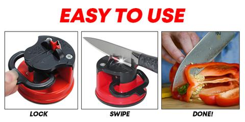 The strong suction cup keeps your sharpener in place and allows you to sharpen the knives with one hand only.